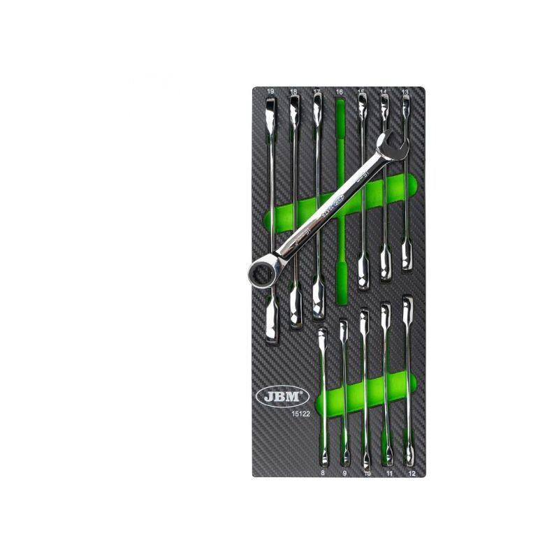 Il set di chiavi a forchetta ad anello con 12 chiavi è perfetto per stringere e allentare viti esagonali e ha molteplici possibilità di utilizzo. Il set di chiavi a cricchetto comprende le dimensioni più comuni: da 8 a 19 mm. Questo set di chiavi a cricchetto da 12 pezzi è prodotto con acciaio al cromo vanadio ad alta resistenza che attribuisce un grande valore alla qualità e alle prestazioni. Gli ingranaggi a cricchetto a 90 Denti richiedono solo un arco di rotazione di 5 gradi, si adattano perfettamente e forniscono una coppia affidabile per serrare o allentare tutti i tipi di bulloni e dispositivi di fissaggio. Caratteristiche tecniche: Dimensioni metriche 8, 9, 10, 11, 12, 13, 14, 15, 16, 17, 18, 19 mm. La confezione contiene: Nr. 1 Set 12 Chiavi a cricchetto