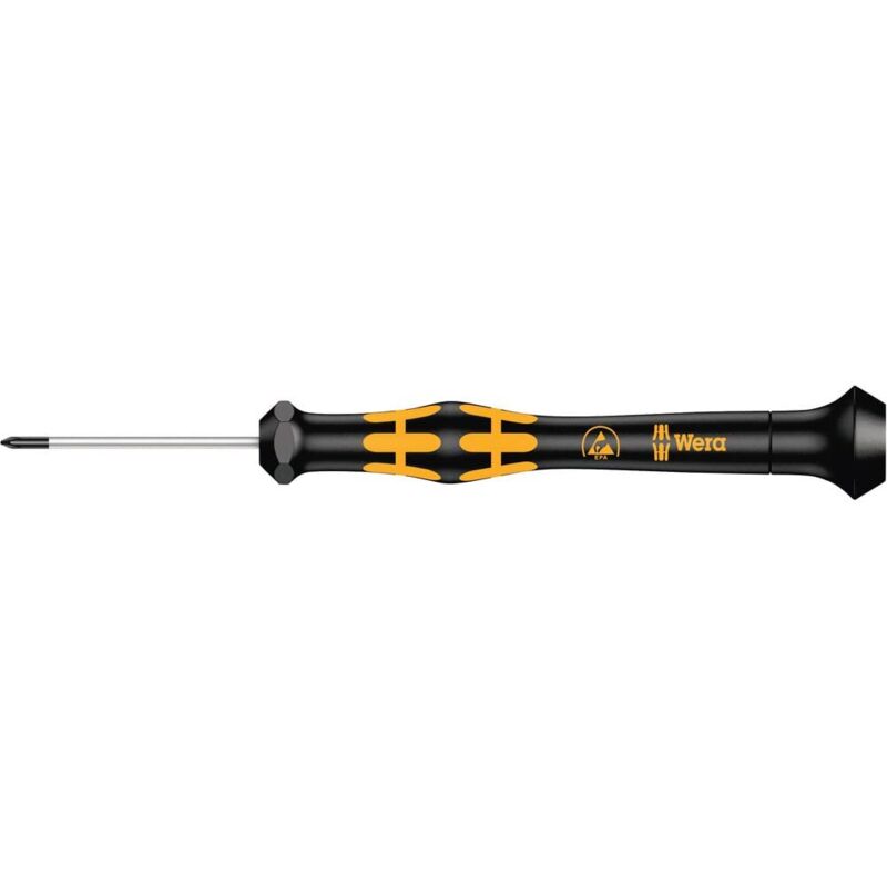 Dettagli tecnici Ambito di applicazione (cacciavite) ESD Cacciaviti caratteristiche Impugnatura multicomponente Dimensione (Cacciavite) PH 000 Dimensione del prodotto, lunghezza 137 mm Forza Croce Phillips Lunghezza della lama 40 mm Materiale Acciaio per utensili Proprietà del materiale legato, nicromatt Tipo prodotto Cacciavite a croce Micro cacciaviti a croce Kraftform 1550 PH - PH 000 Micro cacciavite Wera protetto elettrostaticamente. Protezione sicura contro l'energia elettrostatica e danni associati. Sostenendo la mano sul cappuccio rotante e la zona di rotazione rapida sotto il cappuccio rotante è possibile eseguire un avvitamento veloce e fulmineo. Non è più necessario tanto tempo. Zone di presa con inserti morbidi integrati per trasmettere forze di avvitamento e svitamento più elevate. Zona di precisione per l'angolo di rotazione corretto durante i lavori di regolazione. Incluso nella consegna null Requisiti di sistema null