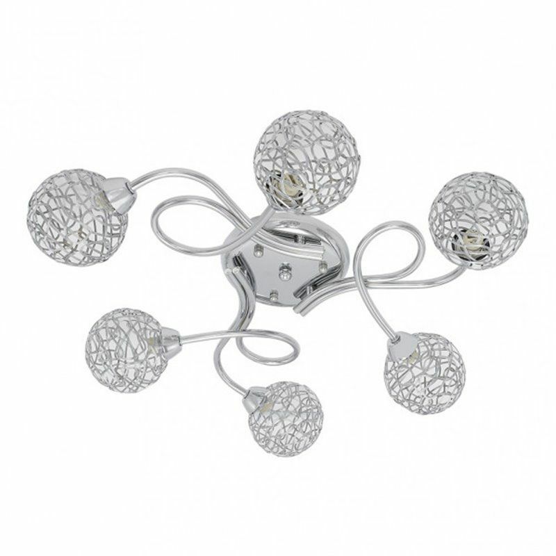 Lampada serie LYON a sei luci, realizzata in metallo CROMATO. Design originale e moderno della sua struttura, da cui nascono i suoi paralumi, formati da un intreccio di fili metallici, che svelano l'interno, risultando in una composizione molto decorativa. Ha misure di 15x60x60 centimetri e un peso netto di 1205 grammi. Ha sei prese in G9. Lampadine non incluse. Puoi completare la decorazione della tua casa con la lampada a quattro luci, da tavolo e da parete in colore cromo. Disponibile anche nel colore della pelle.