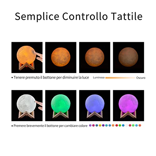 15cm Lampada Luna, ICONNTECHS Moon Lamp di Stampa 3D Dimmerabile Luce Lunare, 16 Colori RGB, USB Ricaricabile, Telecomando e Toccare il Controllo Luce Notturna LED, Regalo ideale per donna e bambini