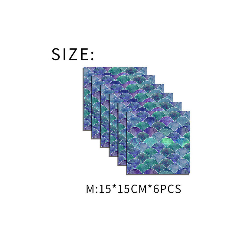6 pz 15x15CM blu squame di pesce piastrelle Eenovation pasta parete pavimento cucina bagno dormitorio ristorante decorazione della stanza adesivi murali,15X15CM,CHINA