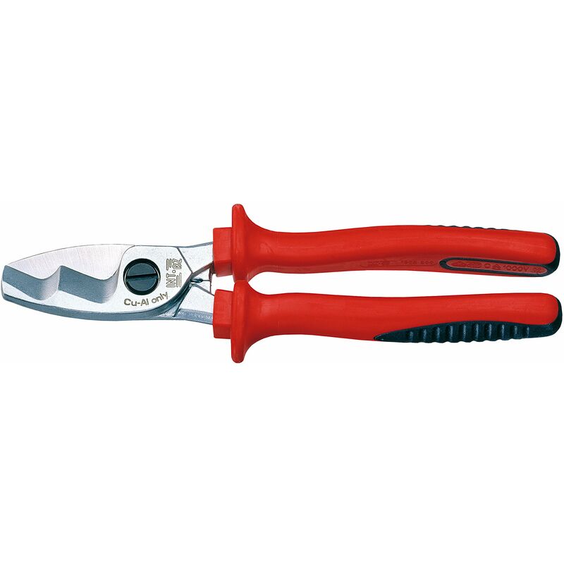 Taglia cavo D22 con lunghezza grezzo 200mm - solo per cavi/anime flessibili in rame e alluminio - cerniera regolabile con vite e controdado - taglienti a due zone - per cavi Ø 22mm Attrezzo isolato 1000 V.