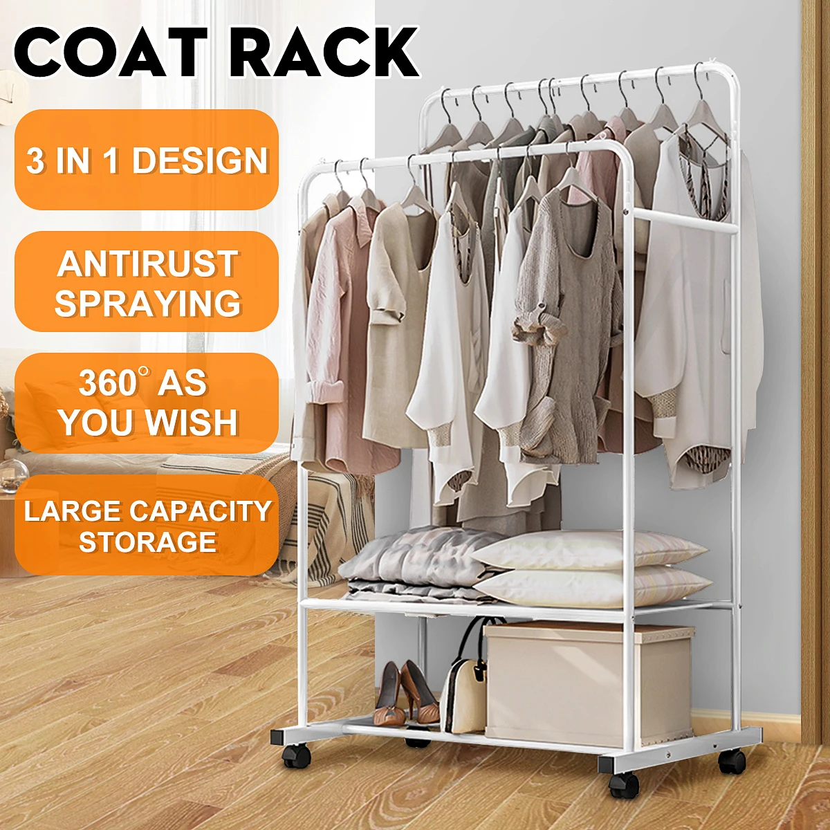 160cm Metal Coat Rack Indoor Simple Hanger Windproof Clothing Shelf Multifunction Floored Coat Stand Bedroom Clothes Hangers