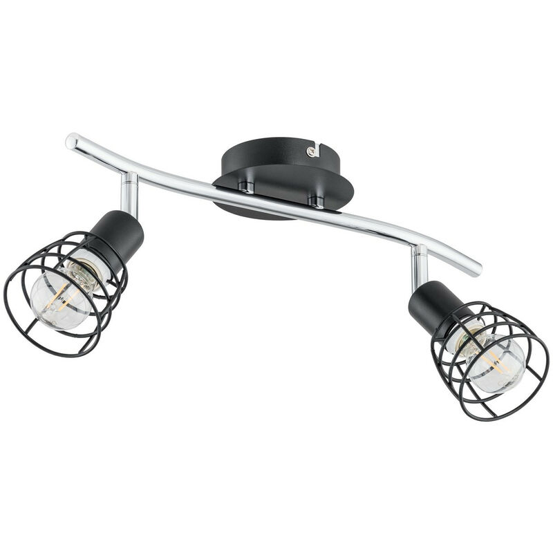 Keter Lighting - 1632 Faretto da soffitto Cage Twin Nero, 36 cm, 2x E14 | Finitura: nero | Altezza: 14,7 cm | Lunghezza: 36 cm | Larghezza: 10 cm | Tipo di lampada: E14 | N. di lampade: 2 | Lampadina inclusa: no | Dimmerabile: Sì - Sono necessarie lampadine dimmerabili | Potenza (max): 40 W
