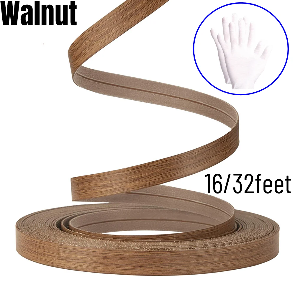 16/32feet Walnut Wood Veneer Edge Banding, Preglued Flexible Wood Tape Iron on with Hot Melt for Cabinet Furniture Restoration