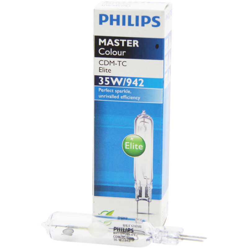 Lampada a scarica ioduri metallici Philips MASTERColour CDM-TC Elite, con le seguenti caratteristiche: Attacco G8.5 Luce naturale 4200K Tensione (Max) 198V Classe energetica F Non dimmerabile Lampada a scarica compatta ad alogenuri metallici in ceramica, a terminazione singola, altamente efficiente e di lunga durata che produce una vivida luce bianca brillante con un'elevata resa dei colori. Utilizzare esclusivamente con alimentatori con controllo elettronico. L'alimentatore deve includere protezione alla fine del ciclo di vita (IEC61167, IEC 62035). Caratteristiche: Posizione di funzionamento UNIVERSALE Vita al 5% di guasti (Nom) 9000 h Vita al 10% di guasti (Nom) 10000 h Vita al 20% di guasti (Nom) 12000 h Vita al 50% di guasti (Nom) 15000 h Lumen 3800 LED RA 90 Tensione (Max) 198V Tempo di riaccensione (Min) (Max) 15 min Tempo di accensione (Max) 30s Non dimmerabile Finitura lampadina Trasparente Forma lampadina T14 [ T 14 mm] Classe energetica F Consumo energetico kWh/1000 h40 kWh