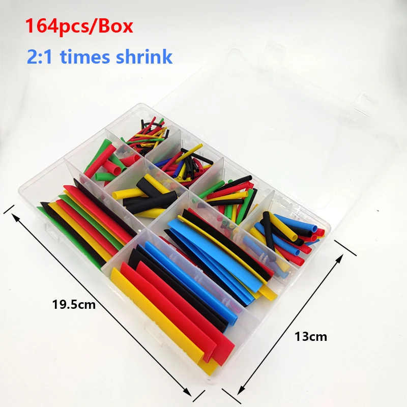 164pcs/box Heat Shrink Tube Kit Shrinking Assorted Polyolefin Insulation Sleeving Heat Shrink Tubing Wire Cable 8 Sizes 2:1 s