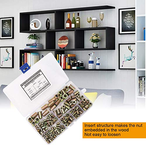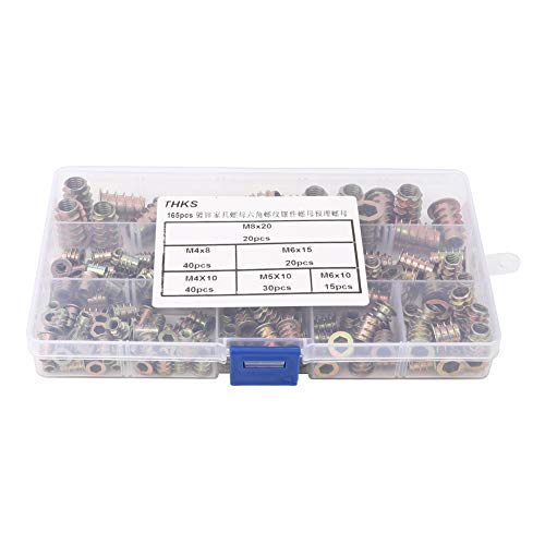 165Pcs Dado con inserto filettato esagonale Dado per mobili in legno zincato Set dado per inserto filettato in acciaio al carbonio placcato colore