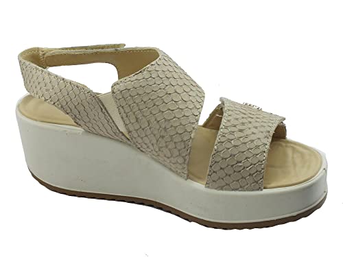 IGI&CO 1667822 Nabuk Tango Panna Sandali per Donna con zeppa alta doppia chiusura a strappo (Taglia 39)