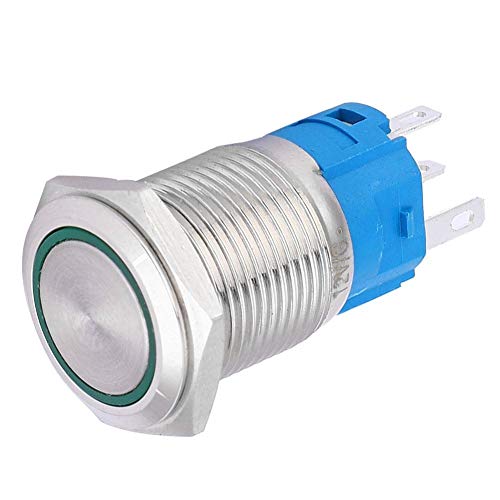 16mm Press Car Press LED Light 5Pin Auto-reset 1NO 1NC Interruttore a pulsante in metallo Interruttore momentaneo ON/OFF Pulsante di avviamento per modifica auto(Green Light 12V)