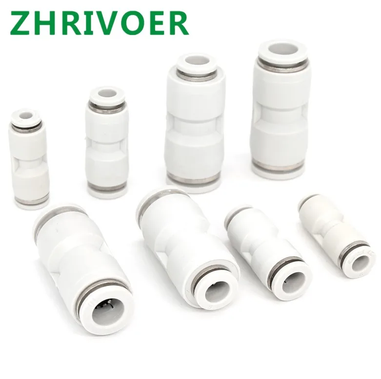 4 6 8 10 12 14 16mm Tube Straight Push in Pneumatic Connector One Touch Union Quick Fittings White Air Water Tube Fittings