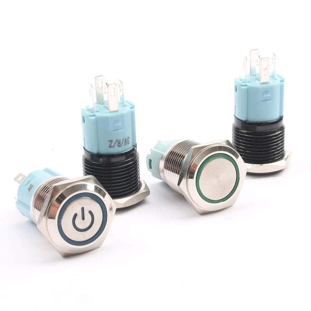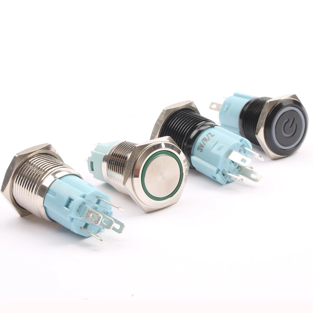 16mm Waterproof Metal Push Button Switch With LED light RED BLUE GREEN YELLOW Self-locking and Momentary 16mm