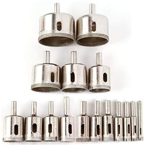 16pz. 6-50mm Punte Cava per Trapano Foro Fresa per Superfici Vetro Ceramica Diamante Granito Marmo