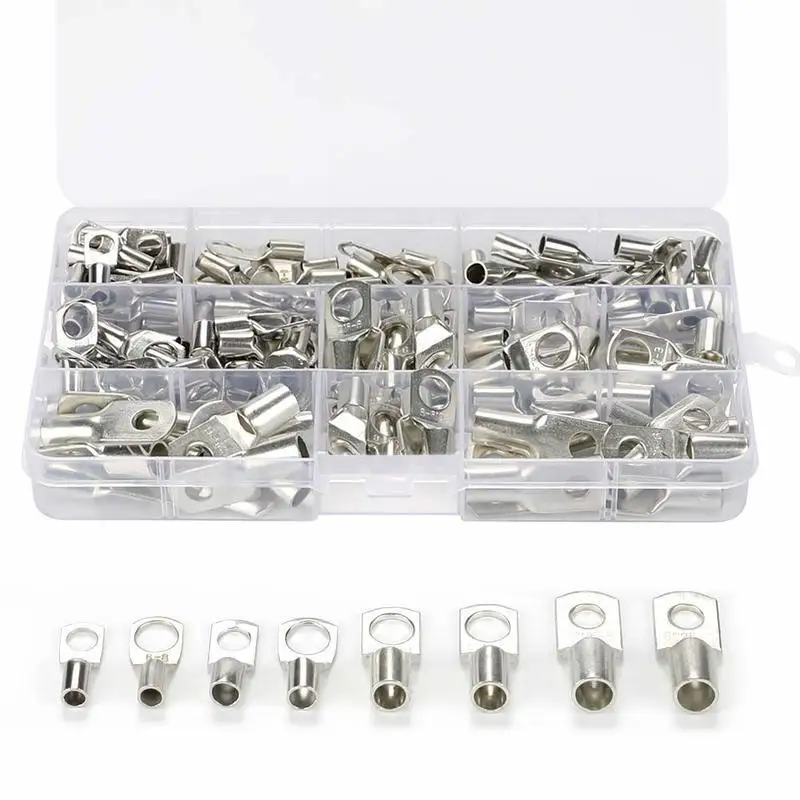 170/100/60Pcs SC Bare Tinned Copper Lug Terminals Ring Seal Wire Connectors Bare Cable Crimped/Soldered Terminal Assortment Kit
