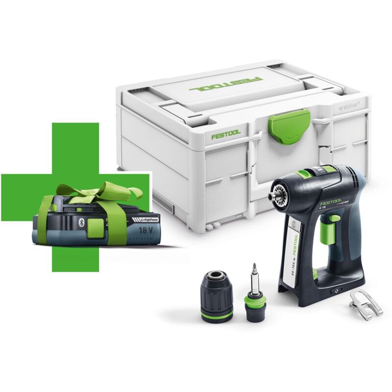 Festool Trapano avvitatore a batteria C 18-Basic-4,0 - 577050 Forma: straordinaria. Testa: sostituibile. Vantaggi e benefici Passaggio da avvitatura a foratura senza modificare la coppia impostata Accessori intelligenti e sistema di attacco rapido dell'utensile CENTROTEC per tutte le applicazioni: mandrino angolare, mandrino eccentrico e mandrino con limitatore di profondità Interfaccia FastFix sul trapano avvitatore a batteria per un cambio accessori senza attrezzi in pochi secondi Di lunga durata, robusto e potente grazie al motore EC-TEC brushless e che non necessita di manutenzione Avvitatore a batteria e batteria sono interamente coperti dai completi servizi del Festool Service Sensibilmente più leggero a piena potenza grazie alla batteria Li-HighPower con celle resistenti alle alte correnti Ideale in combinazione con la batteria Li-HighPower: con neanche 600 grammi di peso, è al tempo stesso un 20% più leggera e 50% più compatta rispetto ad una batteria standard da 5.2 Ah