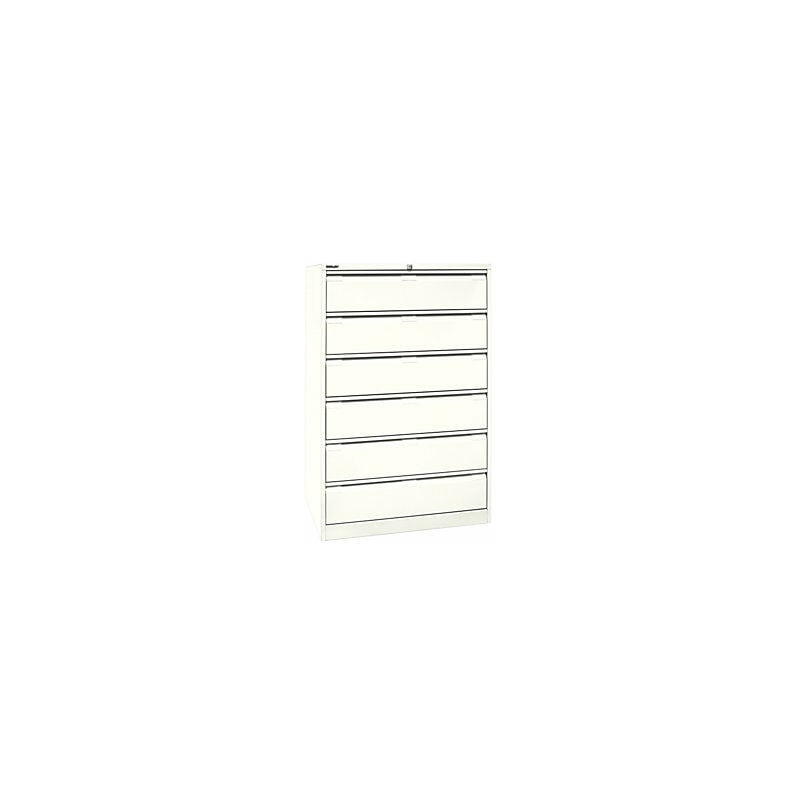 Schedario, a tripla corsia, UNI A5, 6 cassetti, bianco puro. Fornitura = montato. Altezza = 1321 mm. Larghezza = 800 mm. Profondità = 622 mm. Numero cassetti = 6 pz. Versione = a 3 file. Colore corpo = bianco puro. Colore frontalino = bianco puro. Per carta di formato = UNI A5. Materiale = lamiera d'acciaio, verniciata a polvere. Estrazione cassetti = 100%. Versione cassetti = con guide telescopiche su cuscinetti a sfera. Portata per cassetto = 50 kg. Caratteristiche = con serratura. Serratura = chiusura centralizzata. Versione impugnature = listelli di presa. Spessore del corpo = 0.70 mm. Peso = 109.52 kg. Tipo di prodotto = schedari. Lo schedario convince per la grande capienza di archivio delle schede. Ogni cassetto offre spazio a più corsie di schede ed è dotato di un divisorio per ciascuna corsia. È possibile estrarre i cassetti al 100% su guide telescopiche mediante la maniglia a listello con finestrella per targhette integrata. Una chiusura centralizzata con 2 chiavi e doppia