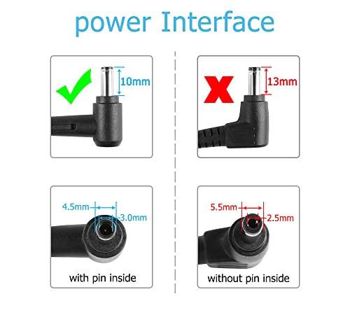 Suggerimenti: i modelli della serie MSI GF66 hanno due dimensioni del connettore. Misura 4,5 x 3,0 mm, l'altra misura 5,5 x 2,5 mm. La dimensione del connettore di questo adattatore è di 5,5 x 2,5 mm. È inferiore a 4,5 x 3,0 mm (si prega di controllare le foto delle dimensioni del connettore). Prima dell'acquisto, si prega di verificare le dimensioni del connettore dell'adattatore originale.