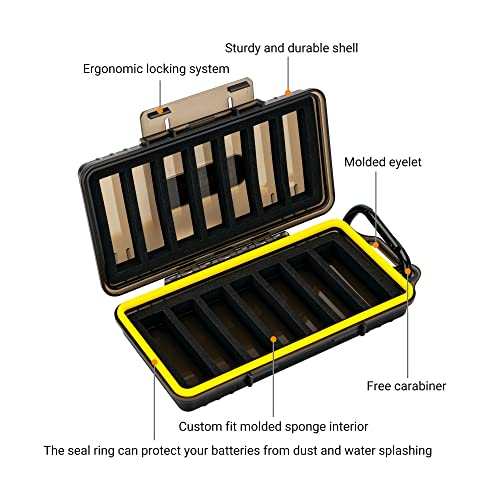 【 Anello di tenuta resistente all'acqua 】 L'anello di tenuta in silicone mantiene la custodia in modo efficace la polvere e l'acqua e protegge le batterie da polvere, umidità, urti e spruzzi d'acqua.