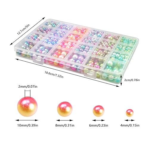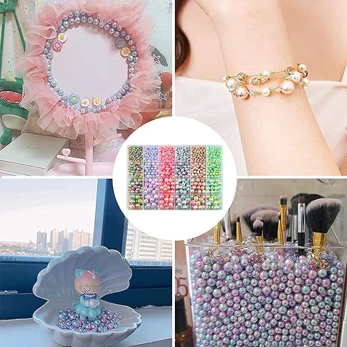 1890 Pezzi Colore Perline,Perle Bianche,Perle Finte Rotonde per Braccialetti, Collane,Abbigliamento,Natale,Compleanni,Copricapo,Orecchini, ecc