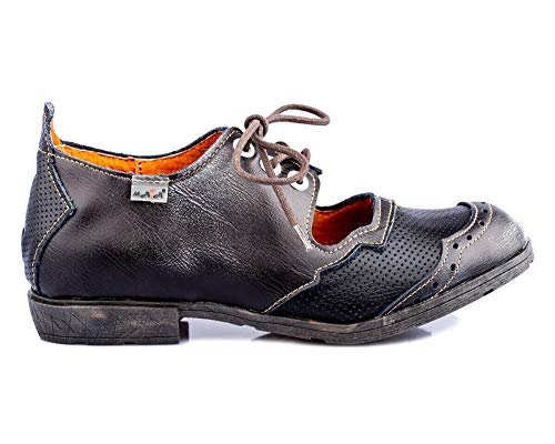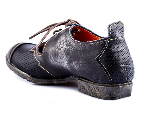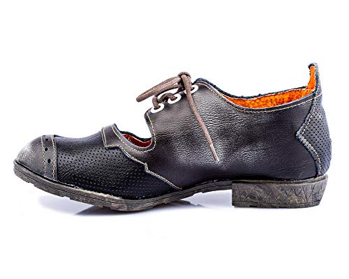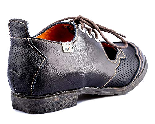 TMA 1899 Scarpe Basse da Donna alla Moda, con Lacci, in Pelle, Nere, Tutte Le Taglie 36-42, Nero (Nero), 36 EU