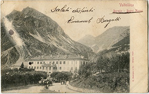 1901 Bormio - Valtellina I Bagni Nuovi, Panorama monti carrozza - FP B/N VG ANIM Cartolina Postale