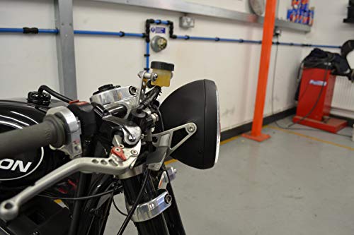 7.5 " 190mm Nero Opaco Acciaio 12v 55W Omologato Moto Faro Fanale per Streetfighter Personalizzazione Moto o Retrò Vintage Moto