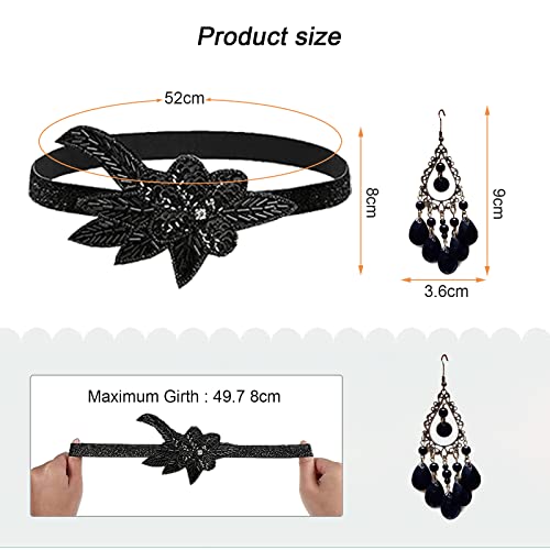 【Dekorationskombination】: 1 20er jahre accessoires Kopfbedeckung + 1 Paar Ohrringe, eine perfekte Kopfbedeckungskombination, diese 20er jahre haarschmuck lässt Sie retro und einzigartig aussehen, als ob Sie in die 1920er Jahre zurückversetzt wären, machen Sie schöner, 1920er kleider damen Kopfbedeckungen und Ohrringe können auch mit verschiedenen Stilen kombiniert werden Kleidung für ein anderes Erlebnis.