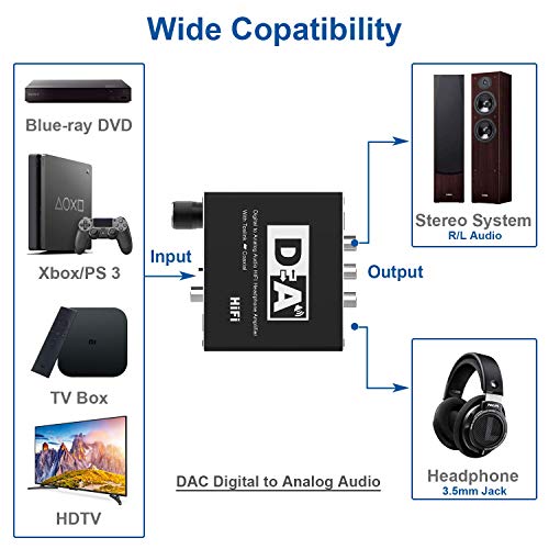192kHz DAC Convertitore Digitale-Analogico Convertitore con Volume Regolabile Digitale SPDIF Coassiale Ottico Toslink to Analog Audio Stereo RCA per PS3 Xbox HD DVD PS4 Sky HD al Plasma Blu-ray