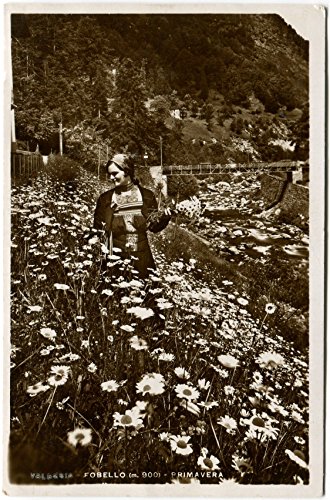 1930 Fobello primavere donna campo margherite Vercelli Savoie France FP B/N VG Cartolina Postale