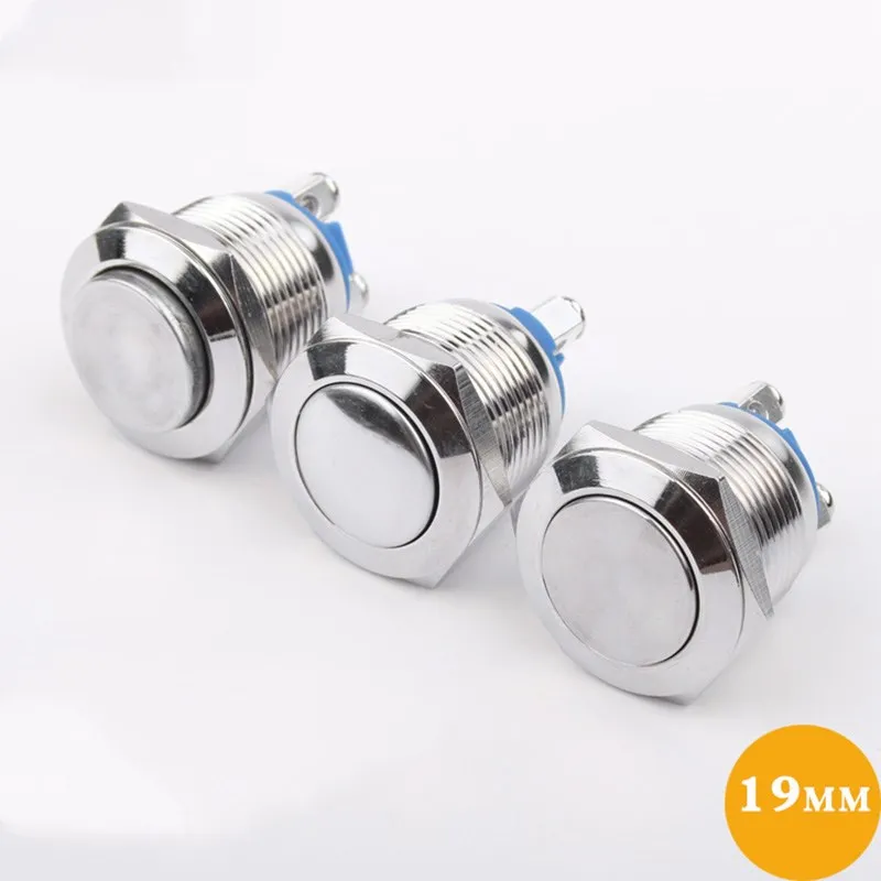 19mm Metal Push Button Switch IP66 Nickel Plated Brass Press Button Self Locking Normal Open High/Flat/Ball Rond Head Momentary