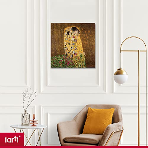 1art1 Gustav Klimt Poster Stampa Artistica su Tela Il Bacio II Quadro da Parete sulla Barella | Murale XXL | Immagine 70x70 cm