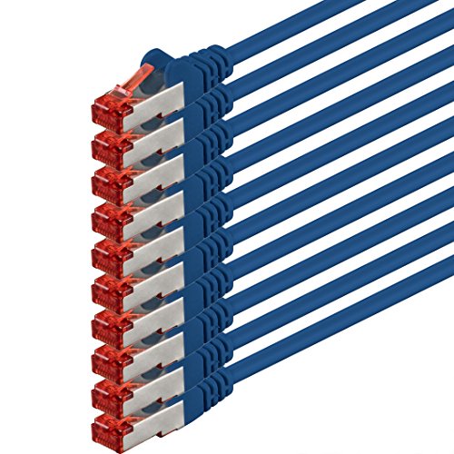 0,25m - blu - 10 pezzi - Marche Cat.6 - Rete cavo con doppia schermatura PIMF (coppie in lamina di metallo) e metalli inoltre intrecciata Cavi Patch 2 connettore RJ-45 tappi con guaina di protezione antipiega contatti dorati