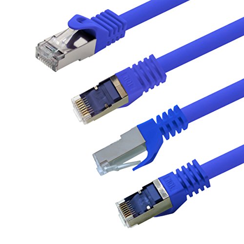 1aTTack.de® Cavo ethernet Gigabit categoria 7 con plug RJ45 categoria 6a (doppia schermatura), 500 MHz Blu / 5 pz 0,5 m