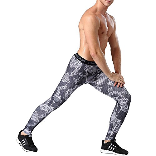 1Bests Sport Uomo Sport Calcio Camo Stampa Collant Workout Correre Quick Dry Baselayer Leggings (LP12, XXL)