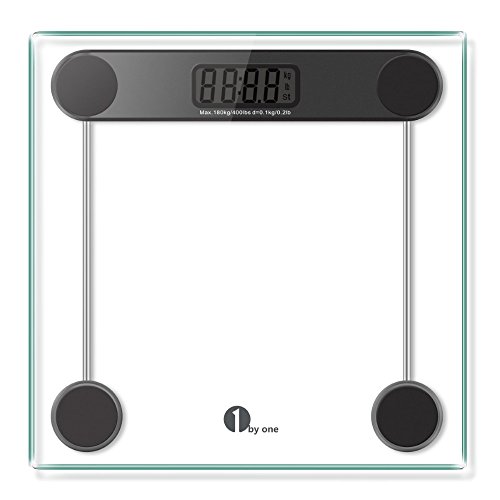 1byone, 700UK-0005, Bilancia digitale pesapersone, In vetro temperato, Tecnologia step-on, Trasparente