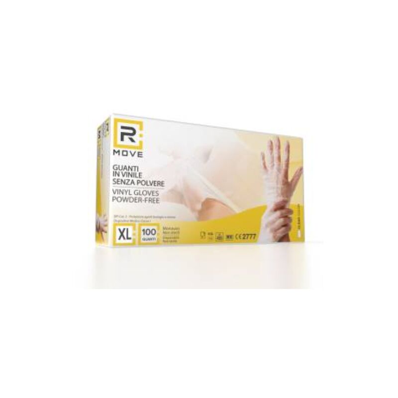 1Conf. da 100pz Tg.XL - RMove Guanti Vinyl Clear Uso Medico Senza Polvere
