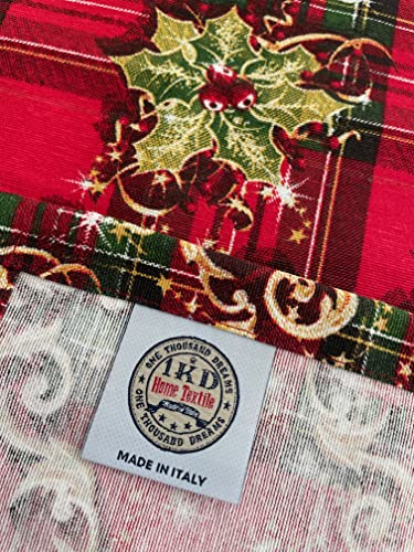 1KDreams Set Tovaglia runner + 2 tovaglioli Natale. Sfondo Rosso. Set natalizio. Decorazione Tartan Scozzese. Moderna e tradizionale. (Set 50x140 + 2 40x40 cm)