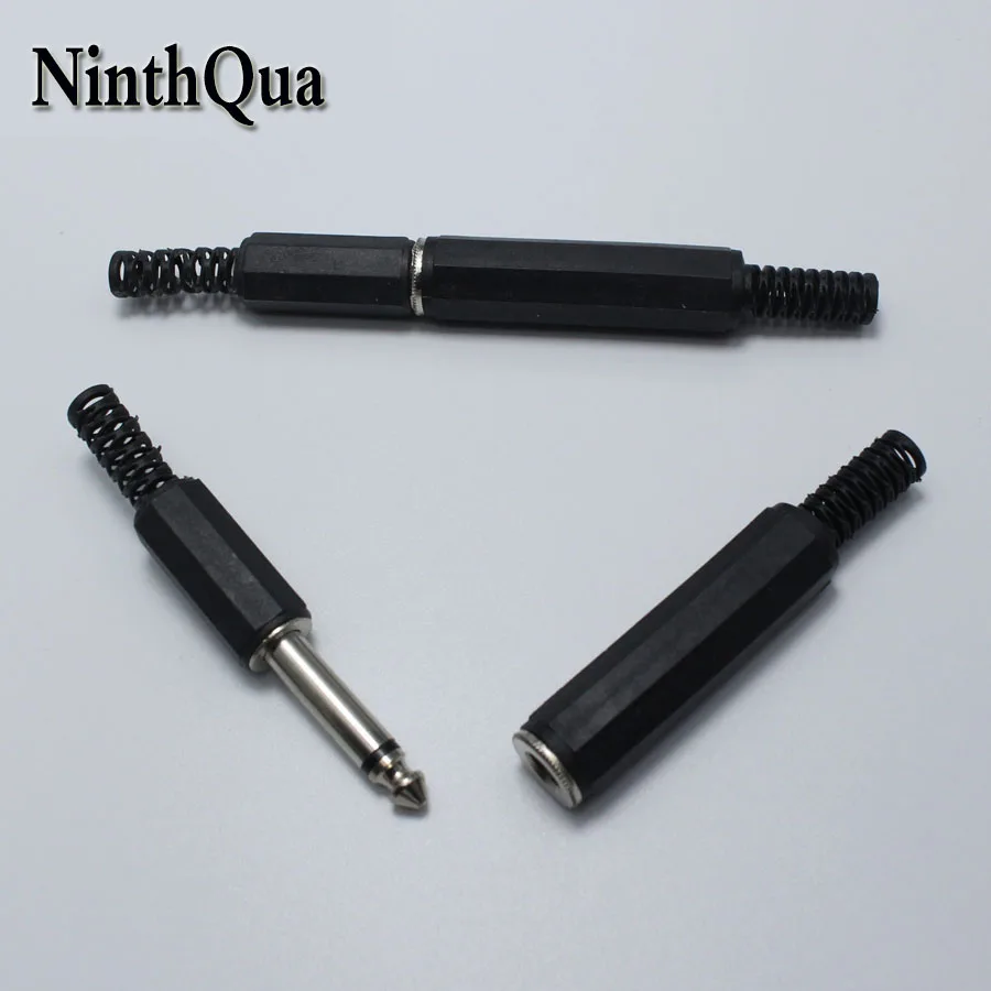 1pair 6.35mm / 6.5mm Audio Plug Male Female Stereo Plugs Head Adapter Connector with Black plastic Housing DIY Parts Welding