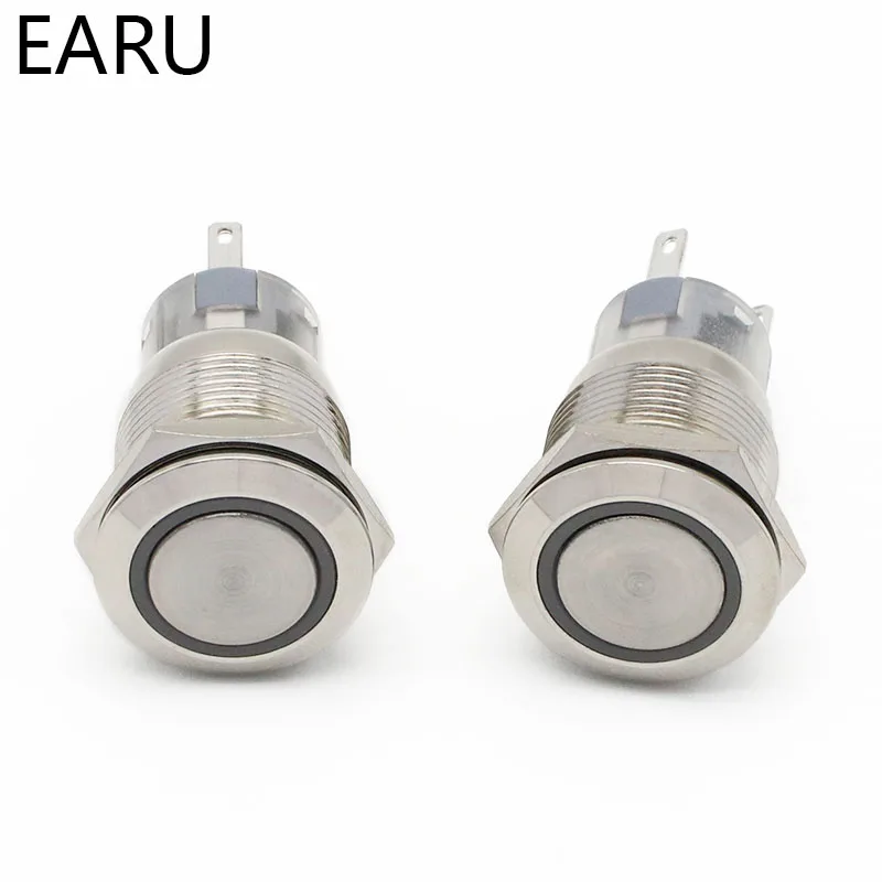 1pcs 19mm Waterproof Latching Maintained Flat Round Stainless Steel Metal Push Button Switch LED Light Shine Car Horn Auto Lock