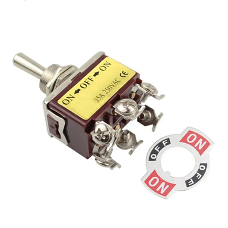 1PCS E-TEN223 Momentary AC 250V 15A DPDT (ON)-OFF-(ON) 3 Position 6Pin Toggle Switch Brown