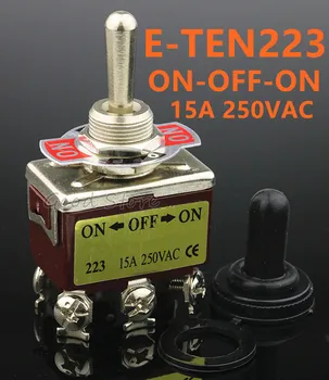 1PCS E-TEN223 Momentary AC 250V 15A DPDT (ON)-OFF-(ON) 3 Position 6Pin Toggle Switch Brown