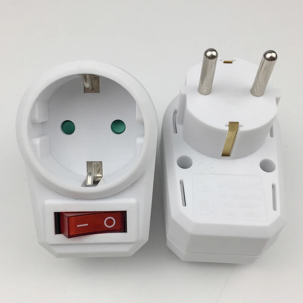 1PCS European Type Conversion Plug 1 TO 1 Way Power Adapter Plug adaptor With Switch 16A AC 250V EU Travel Plug Socket EU Plug