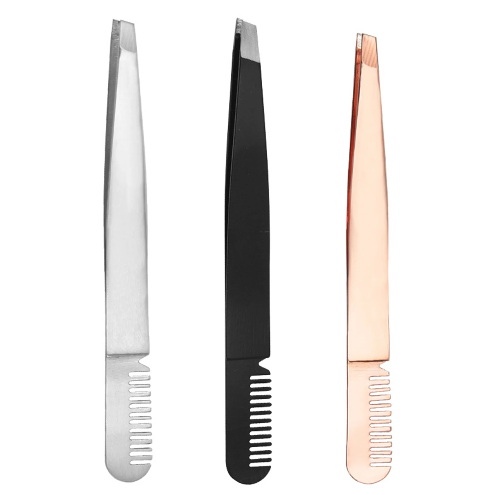 1pcs Eyebrow Tweezer With Eyebrow Brush Comb Stainless Steel Eyelashes Extension Tweezers Comb Eyebrow Clip Makeup Tool