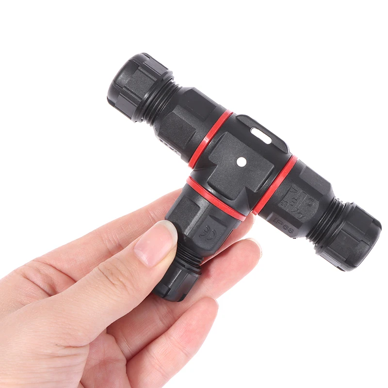1pcs IP68 Waterproof connector T Shape 3 Pin 250V 24A Cable Wire Gland Sleeve Connect Outdoor 3-core Wire Waterproof Connector