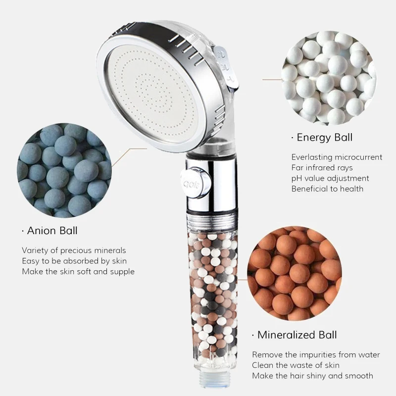 1pcs 3 Modes Bath Shower Adjustable Jetting Shower Head High Pressure Saving Water Bathroom Anion Filter Shower Head SPA Nozzle