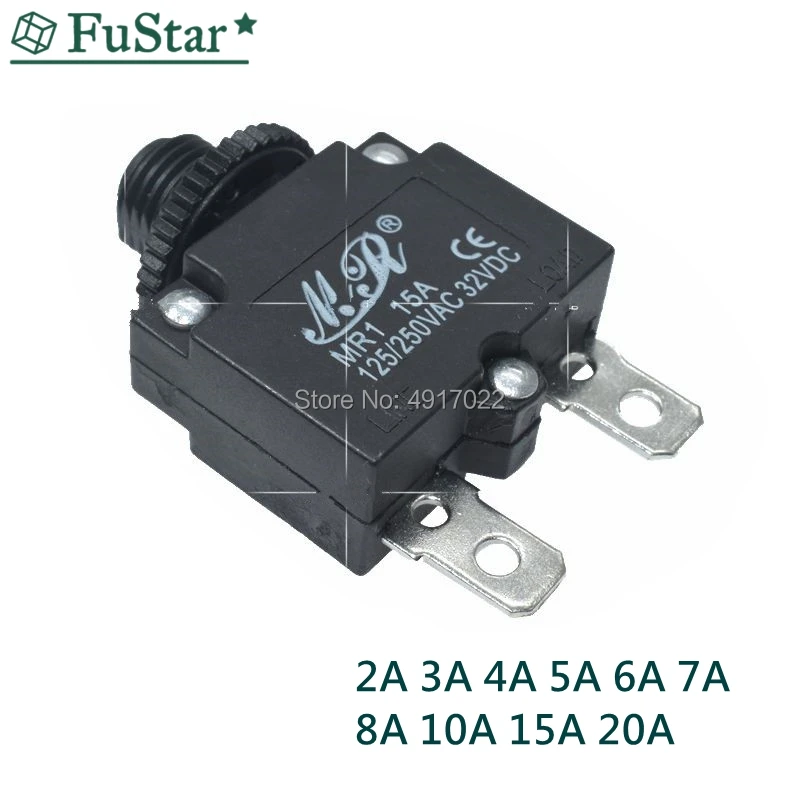 1PCS Reset Fuse Circuit Breaker MR1 2A 3A 4A 5A 6A 7A 8A 10A 15A 20A Thermal Switch Overload Protector Push Button Black WP-01