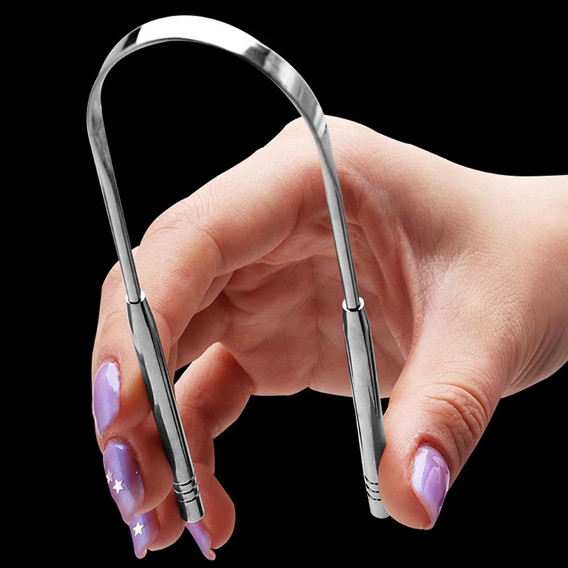 1PCS Stainless Steel Useful Tongue Scraper Cleaner Fresh Breath Cleaning Coated Tongue Oral Hygiene Care Tools