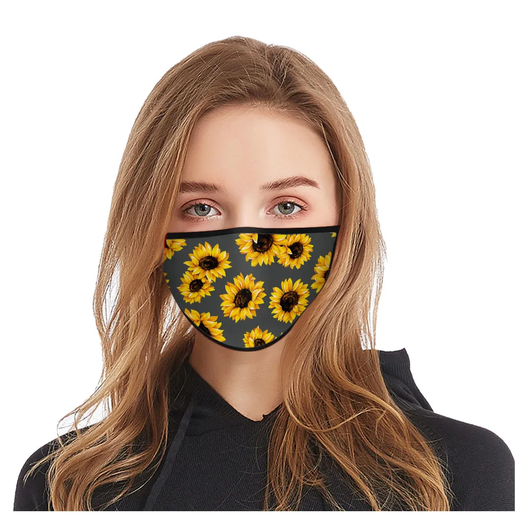 1PCS Washable Reusable Polyester Face Mask Fashion Sunflowers Print Adult Breathing Masks Mouth Mask With Design Mascarillas