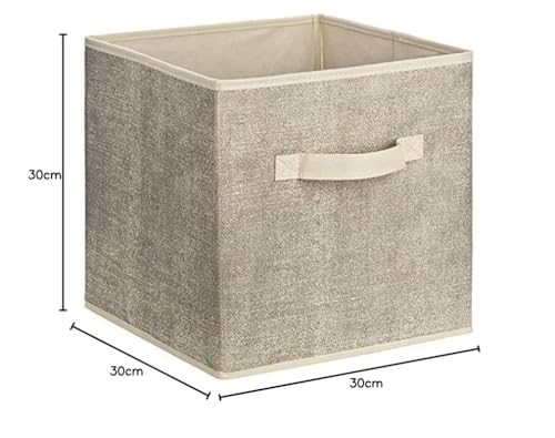 1PLUS, set da 2 pezzi, contenitori quadrati in tessuto, 30 x 30 x 30 cm, box universali per conservare in armadio o scaffale, raccoglitori, ordinatori, scatole di raccolta, Tessuto, beige/grigio, 2