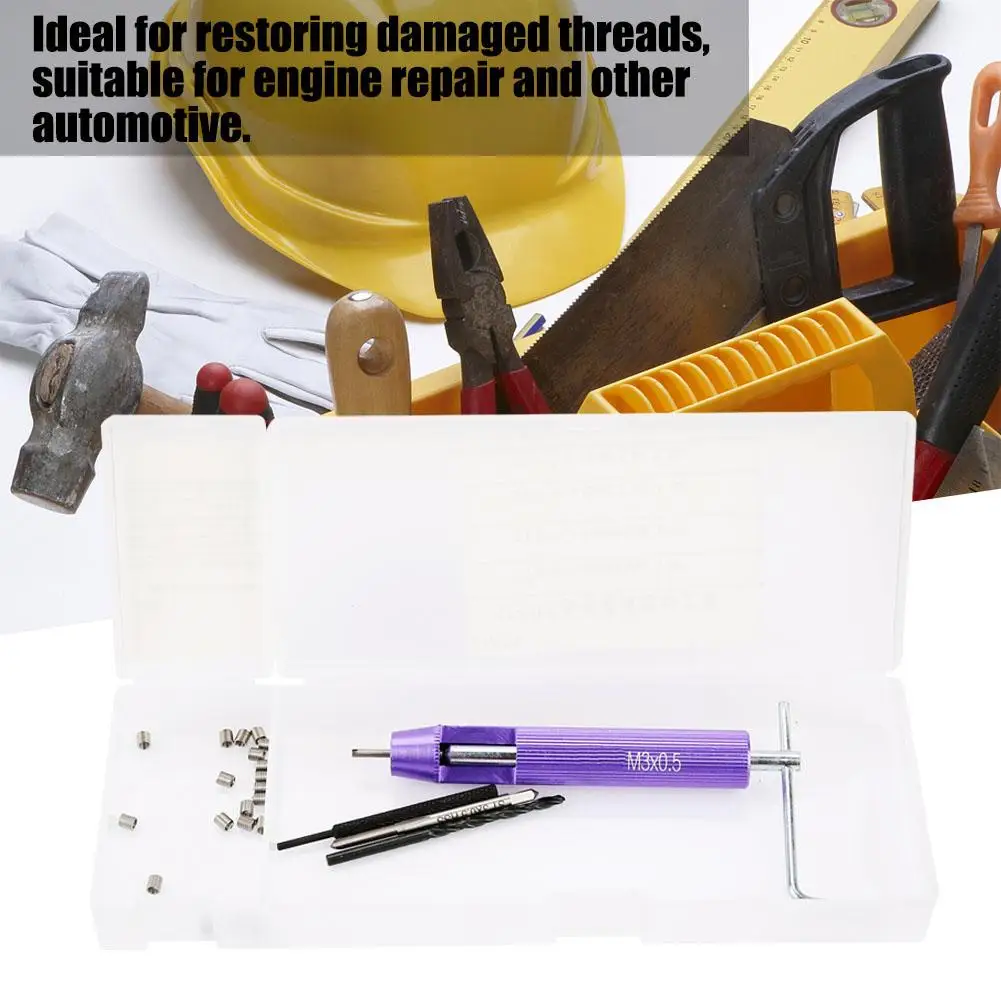 1Set Threaded Inserts Helicoil Car Repair Tools 20pcs M3*0.5mm Thread Insert + Drill Bit+ Thread Tap+ Installation Accessories